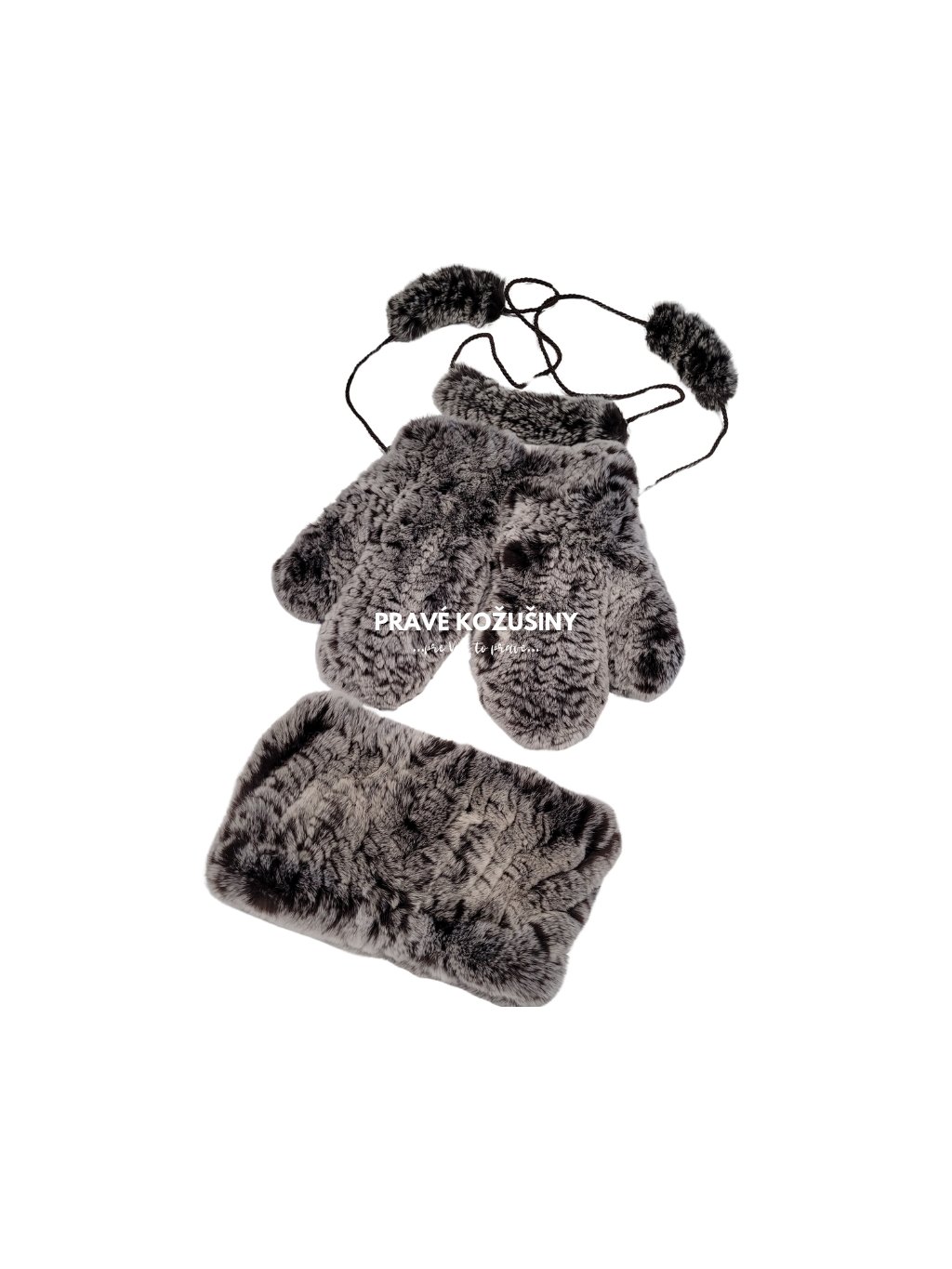 Set čelenky-nákrčníka a rukavíc z králičiny, Se33