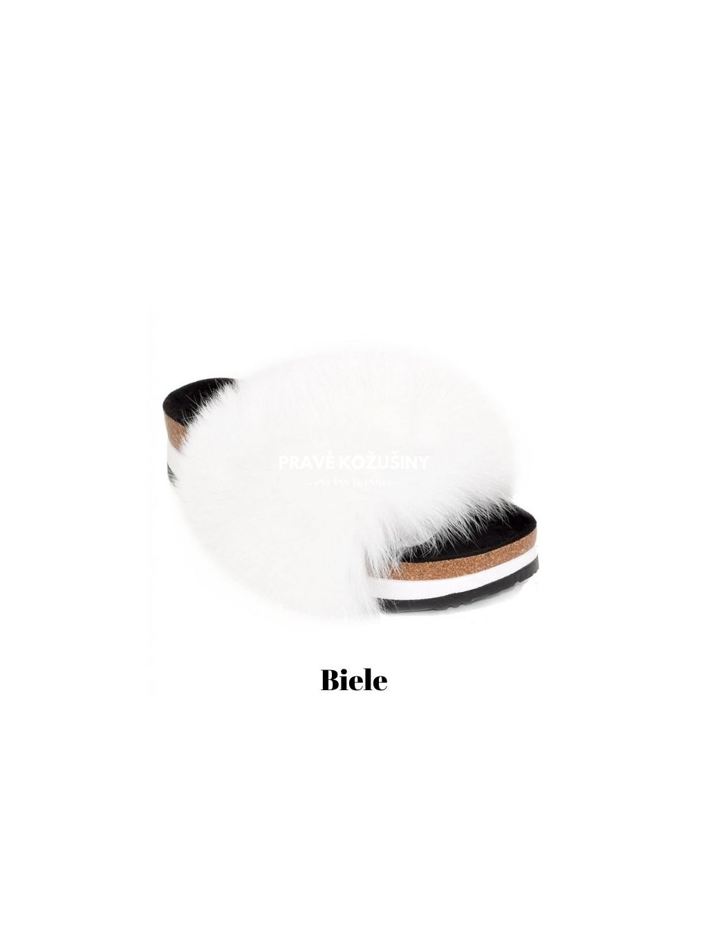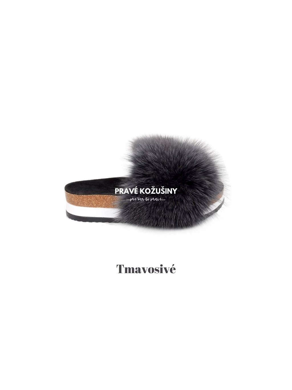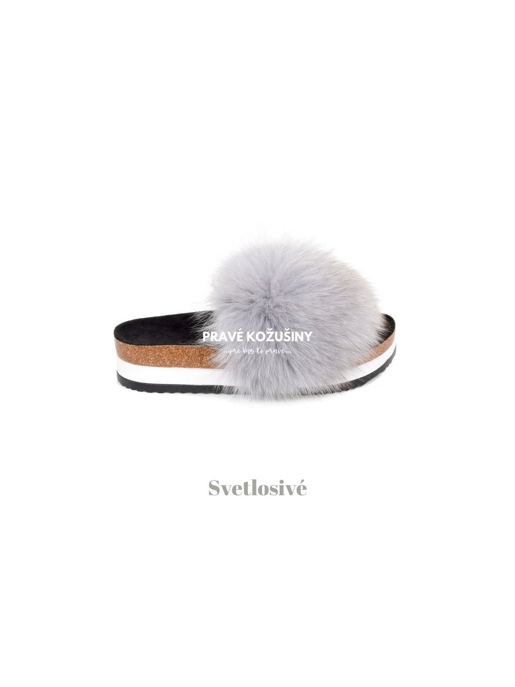 Dámske šľapky na platforme s pravou kožušinkou líšky.