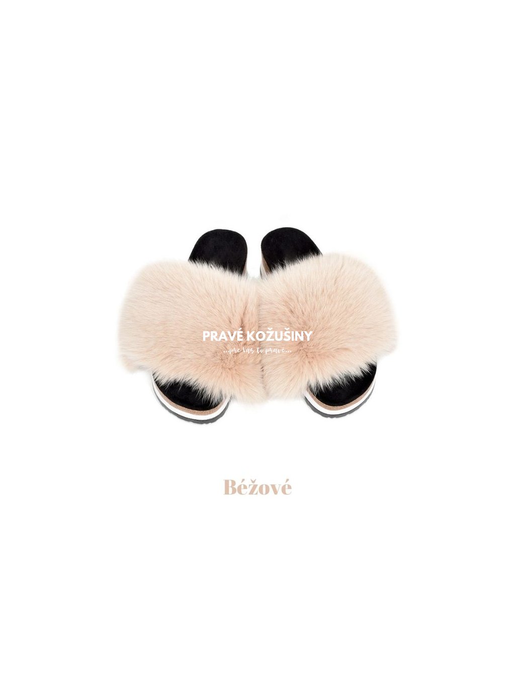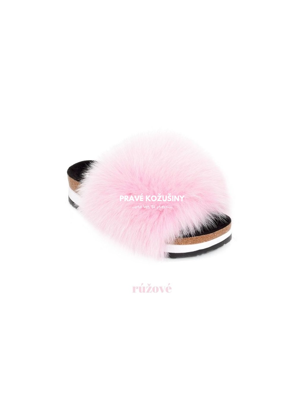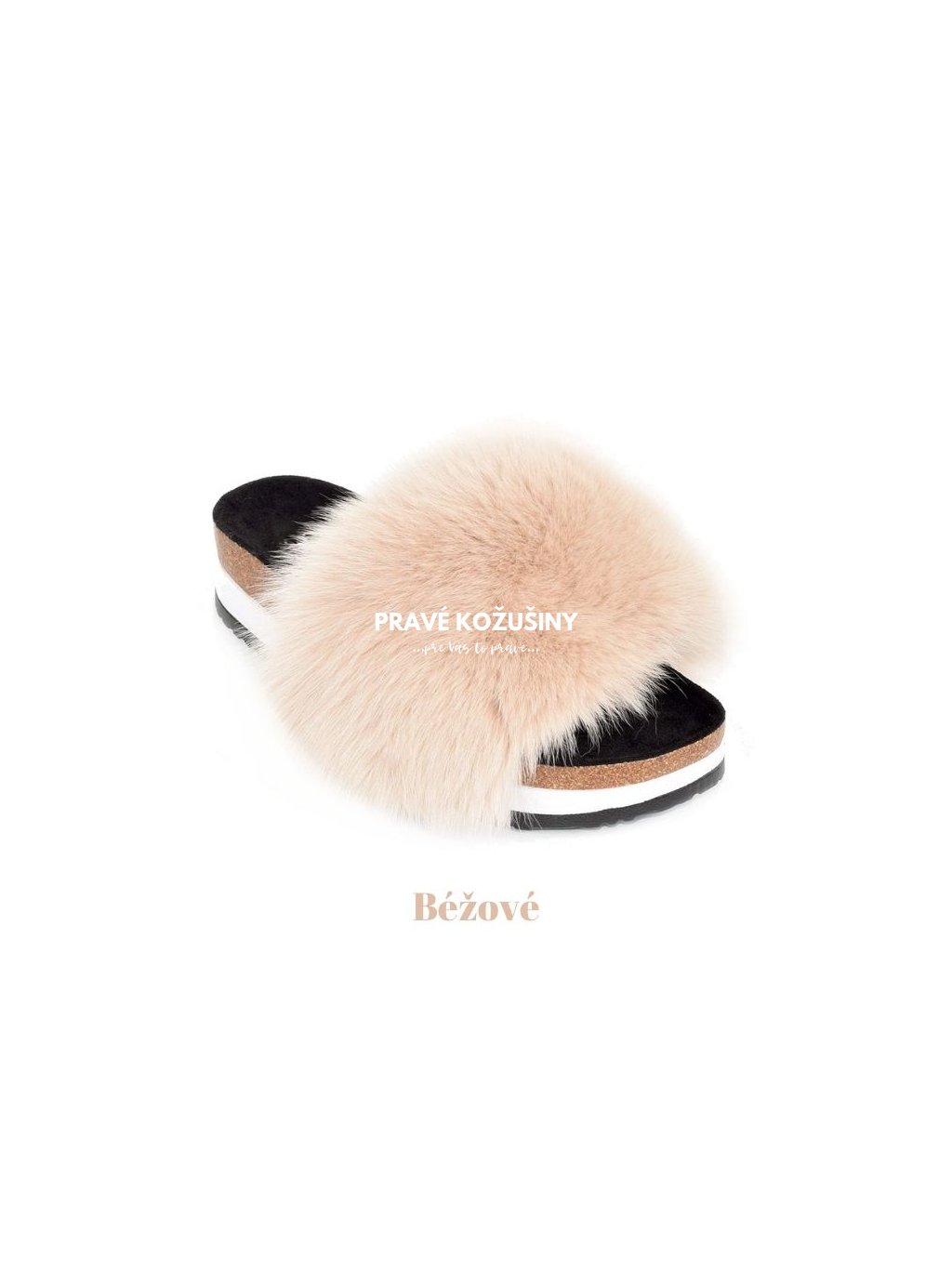 Dámske šľapky na platforme s pravou kožušinkou líšky.