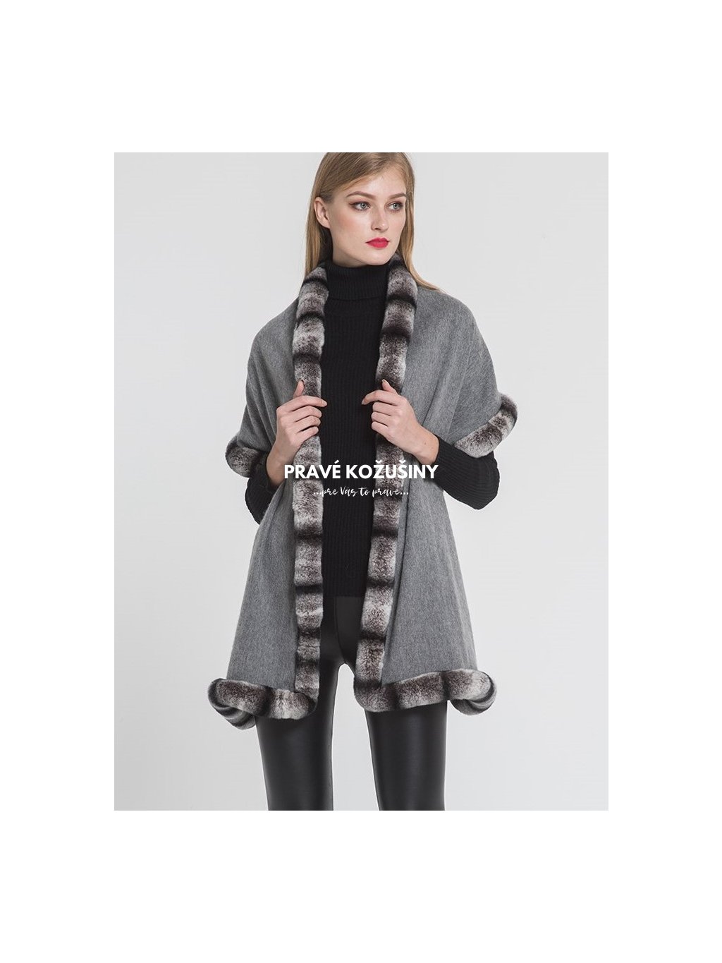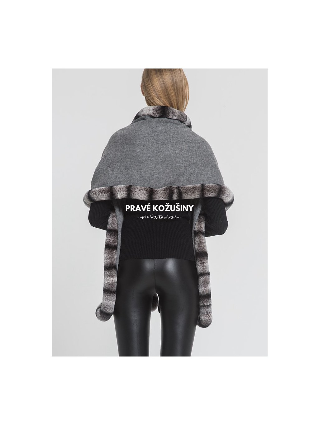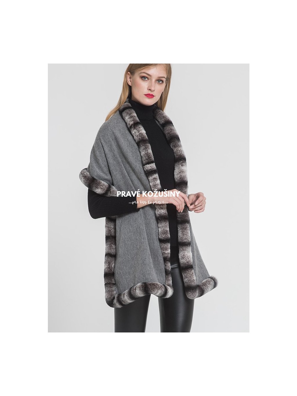 Kašmírová štóla s lemovaním z pravej kožušinky králika Rex.