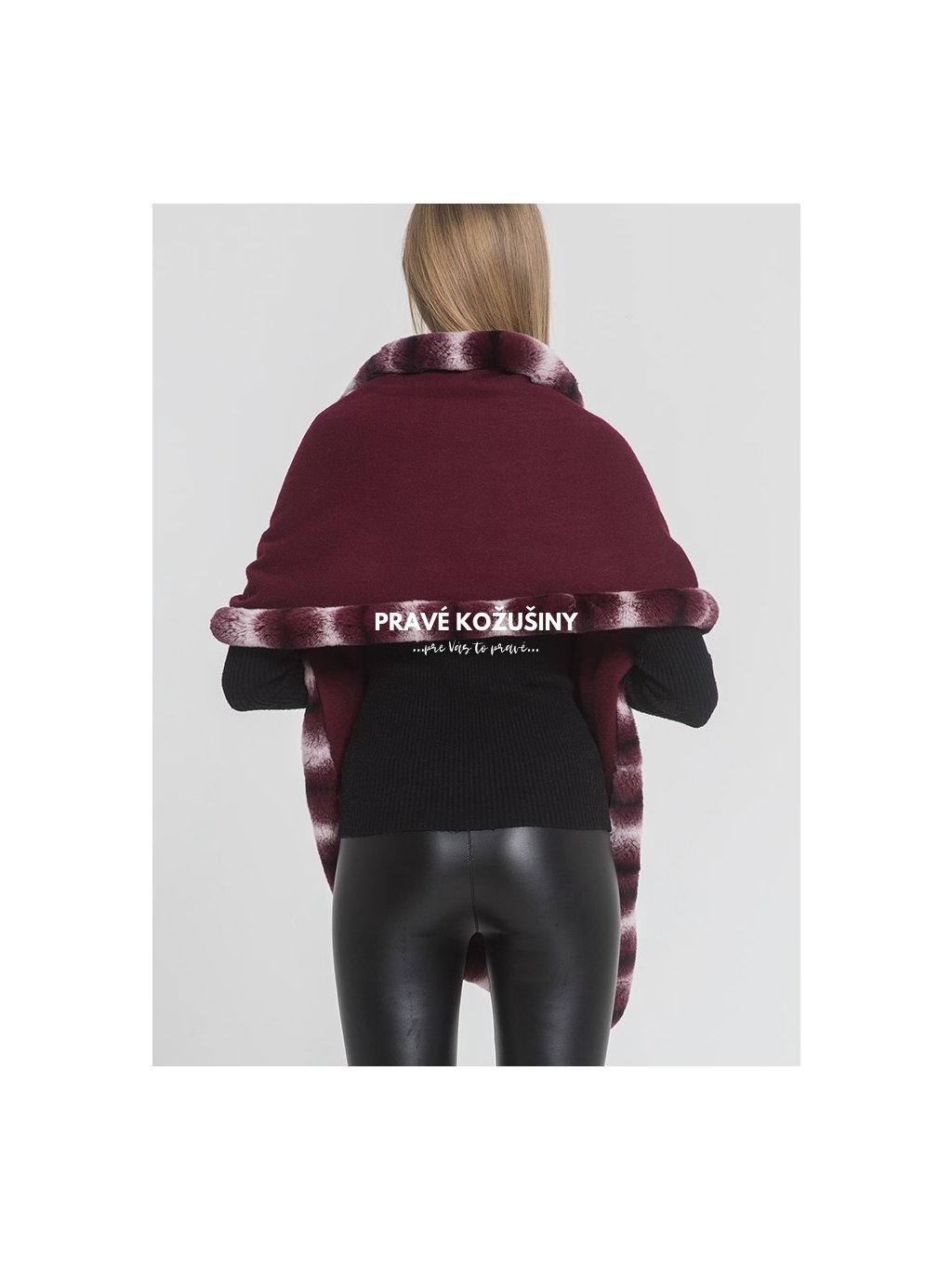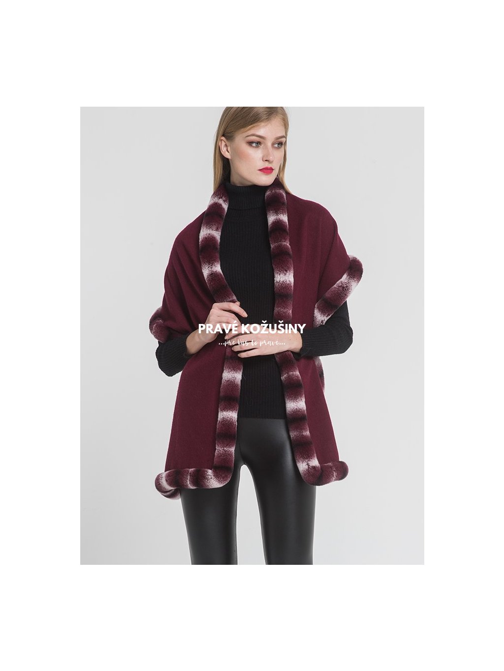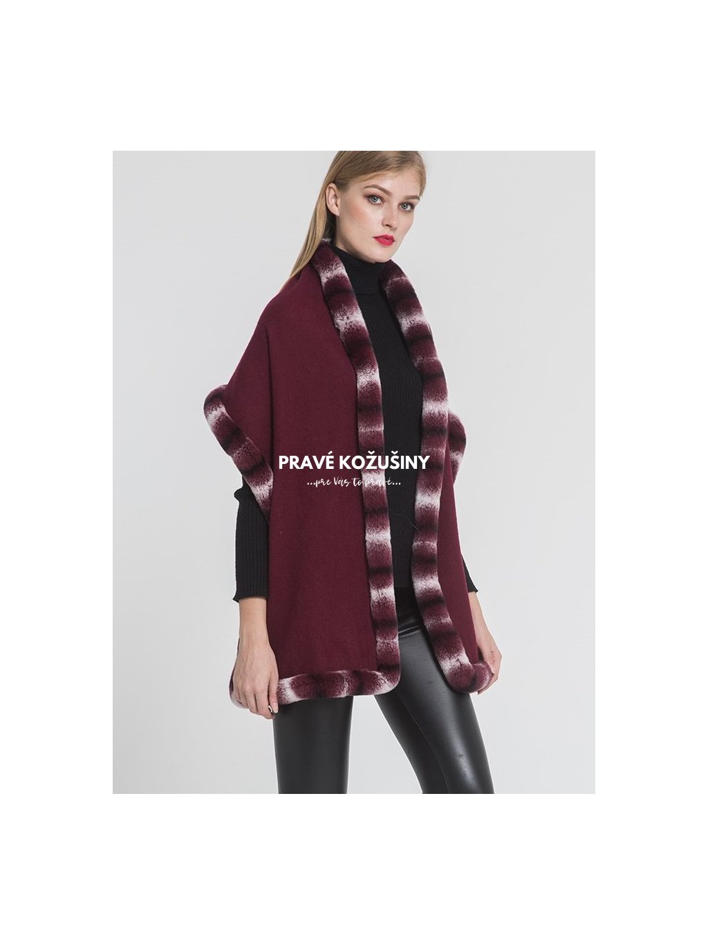 Kašmírová štóla s lemovaním z pravej kožušinky králika Rex.