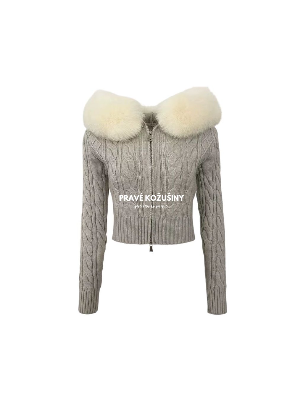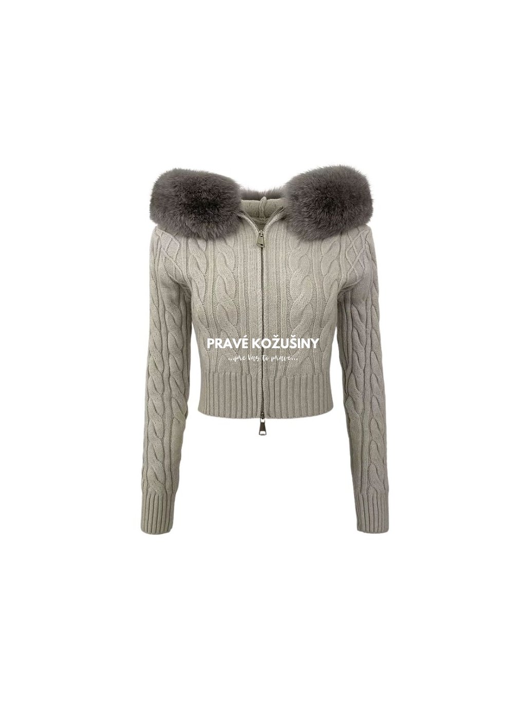 Sivohnedý sveter s pravou kožušinou na kapucni, Sv33