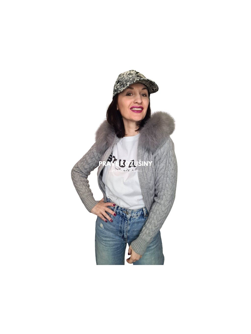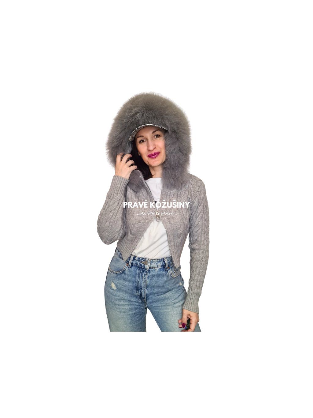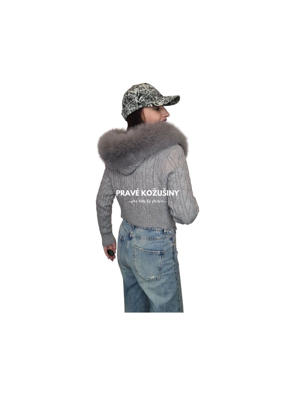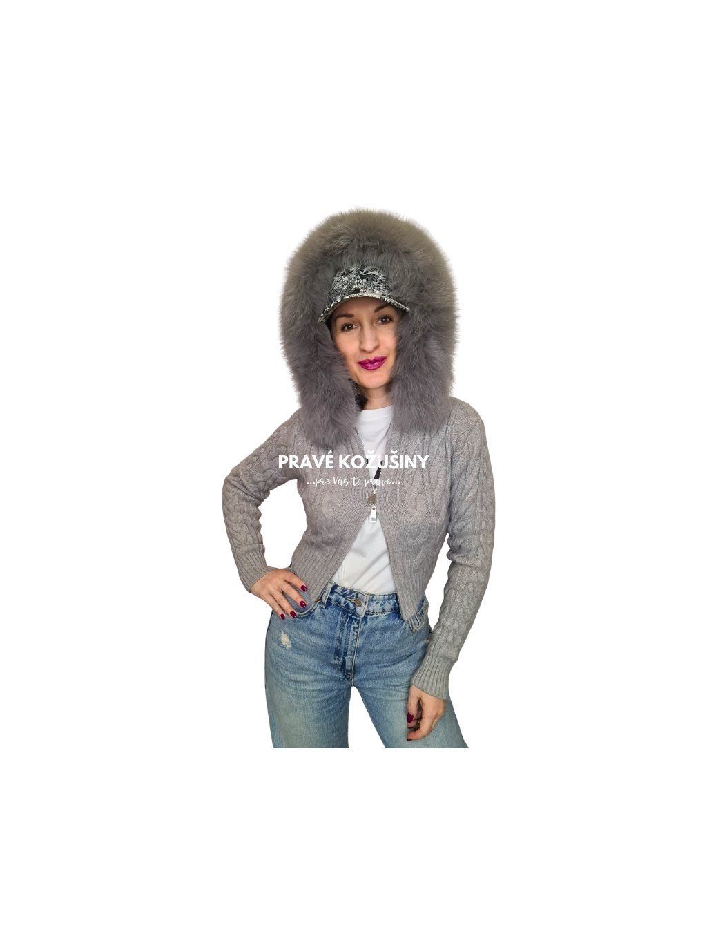 Sivý sveter s pravou kožušinou na kapucni, Sv33