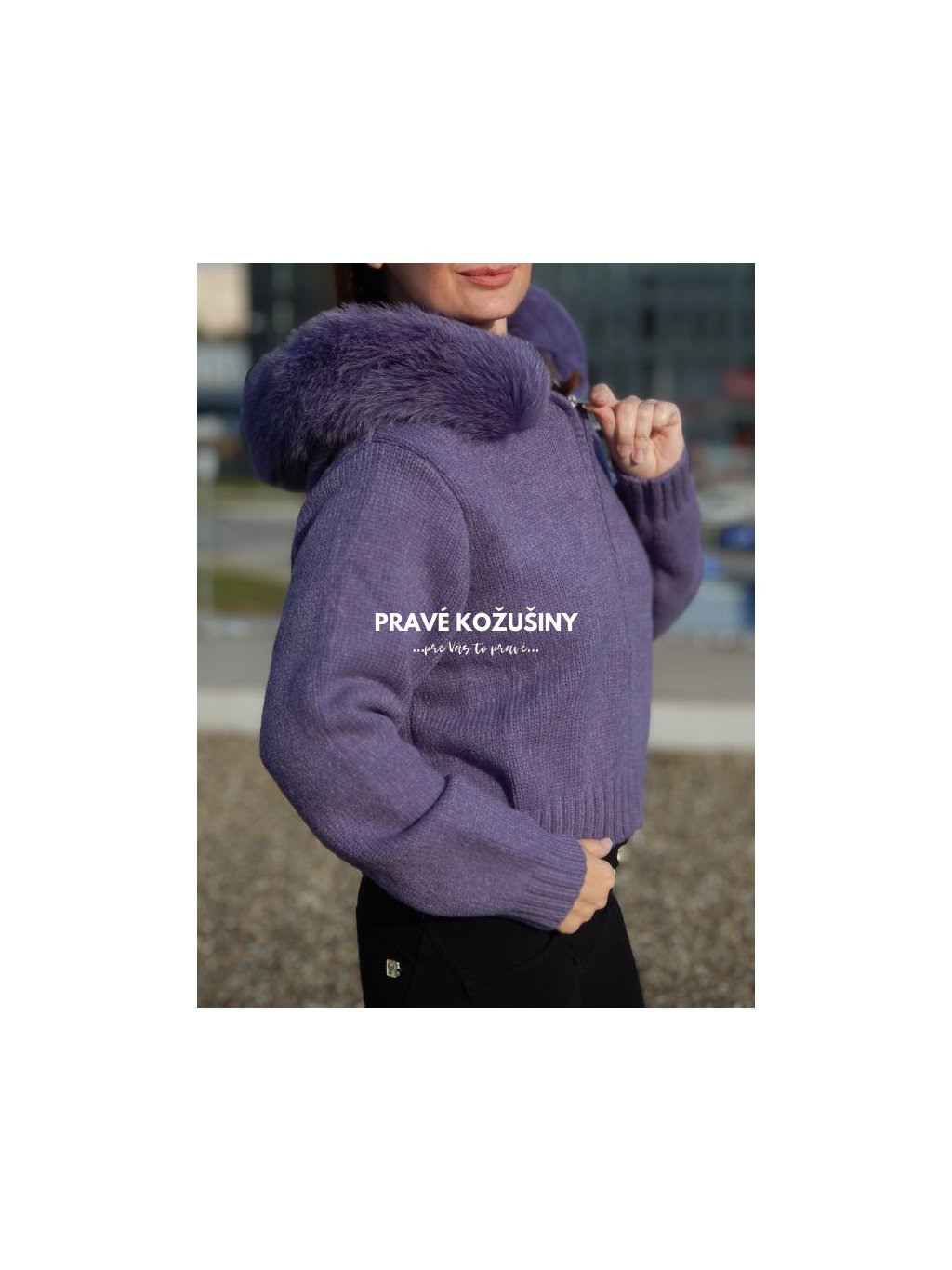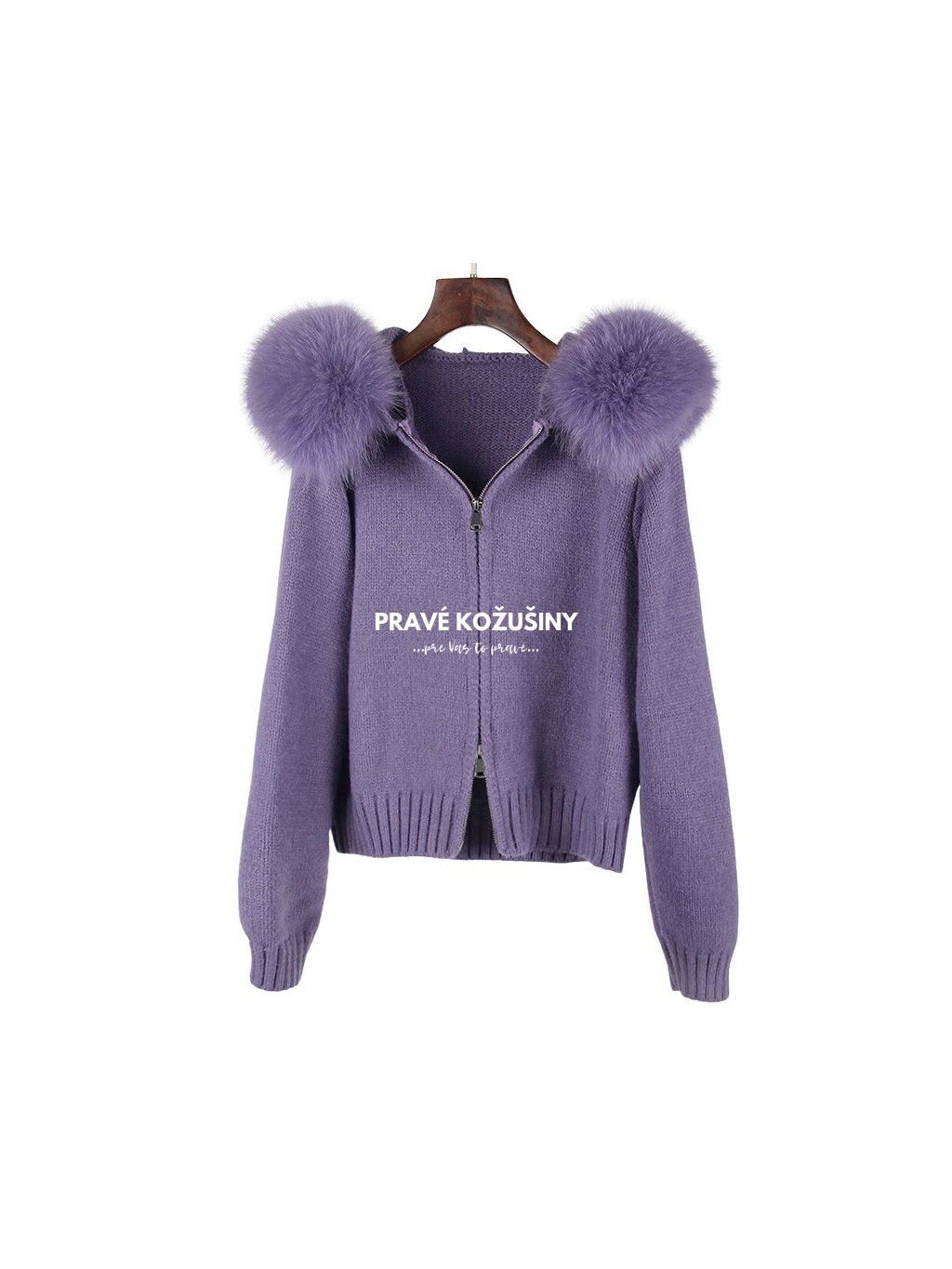 Fialový sveter s pravou líškou na kapucni, Sv21