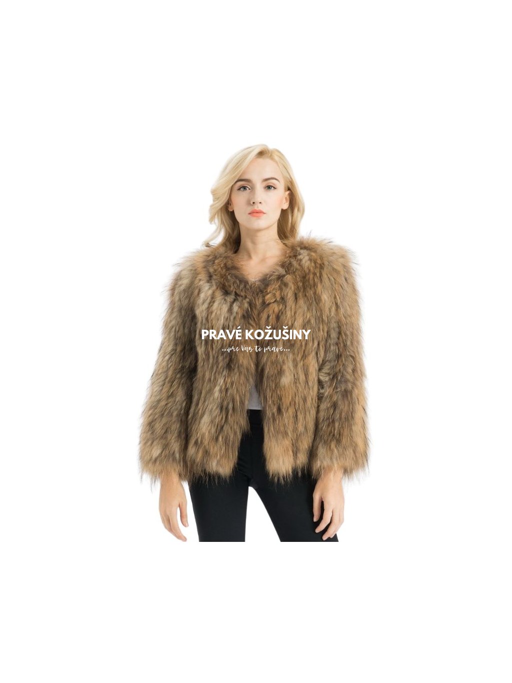 Prírodne hnedý úpletový sveter z pravého mývala, Sv3