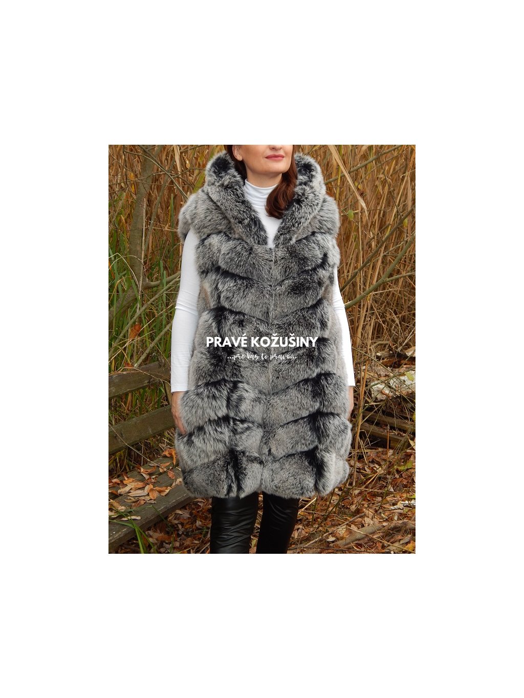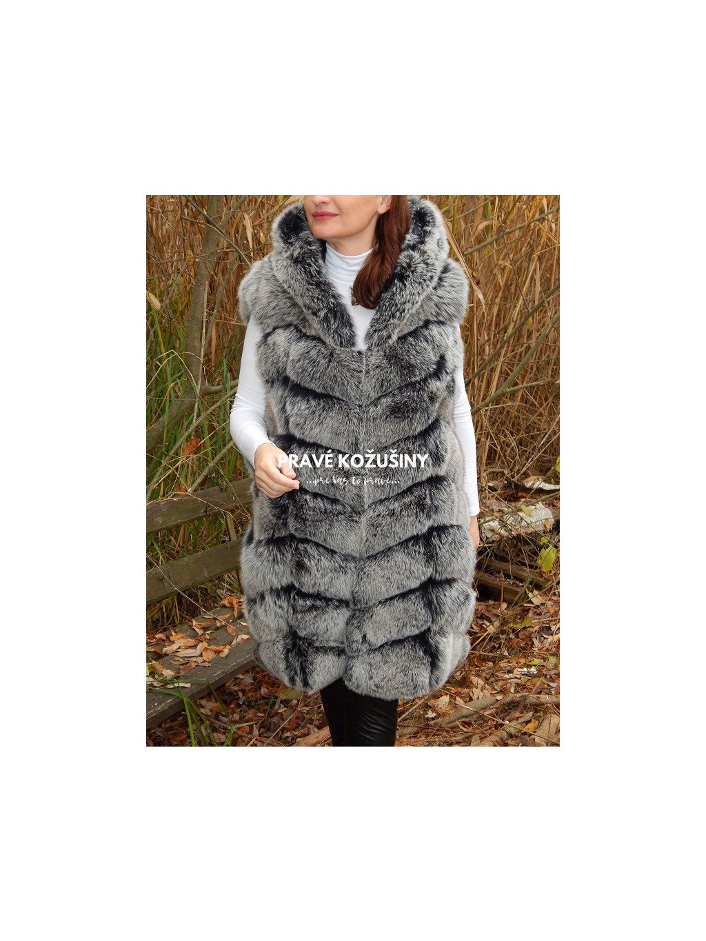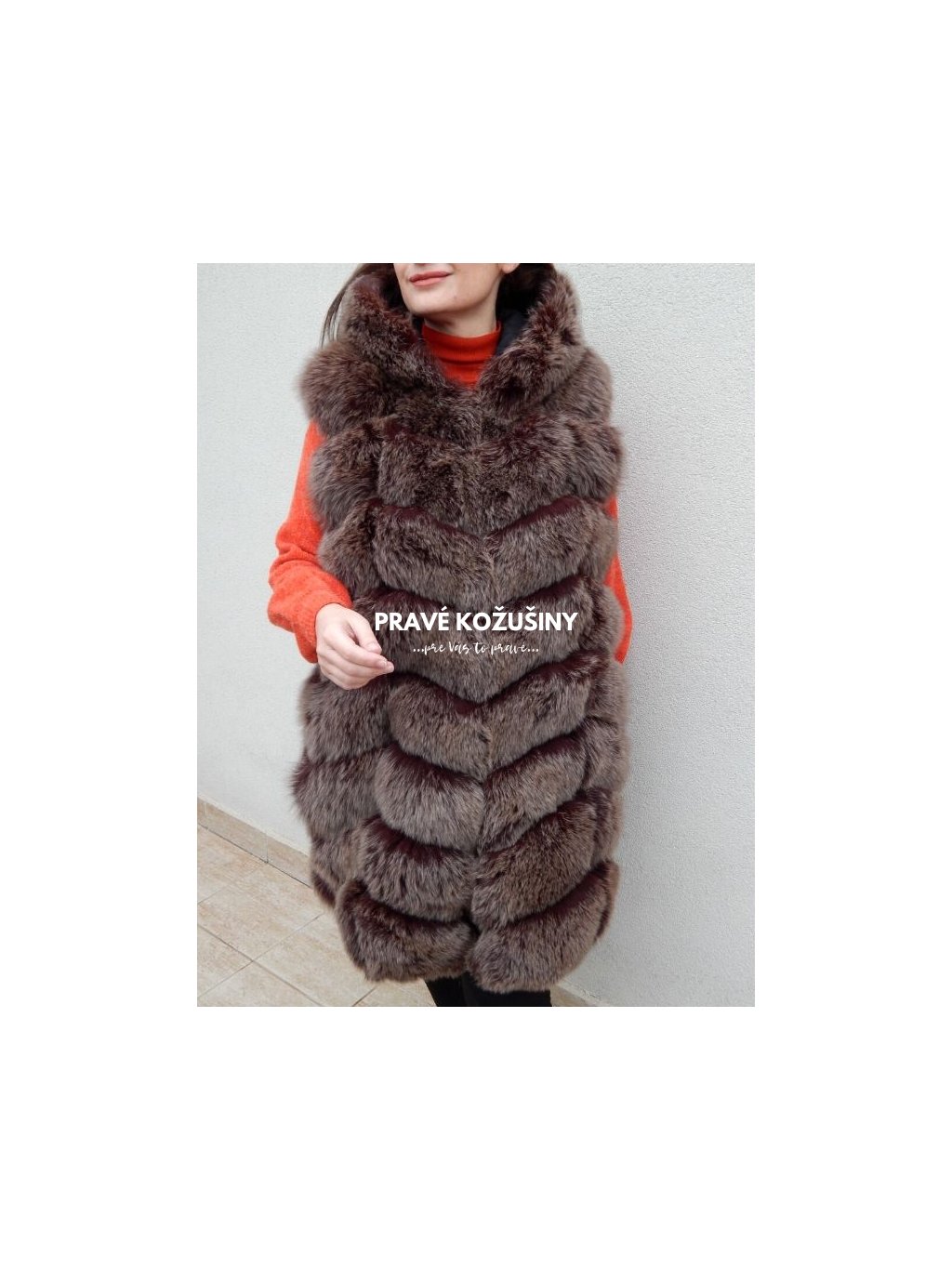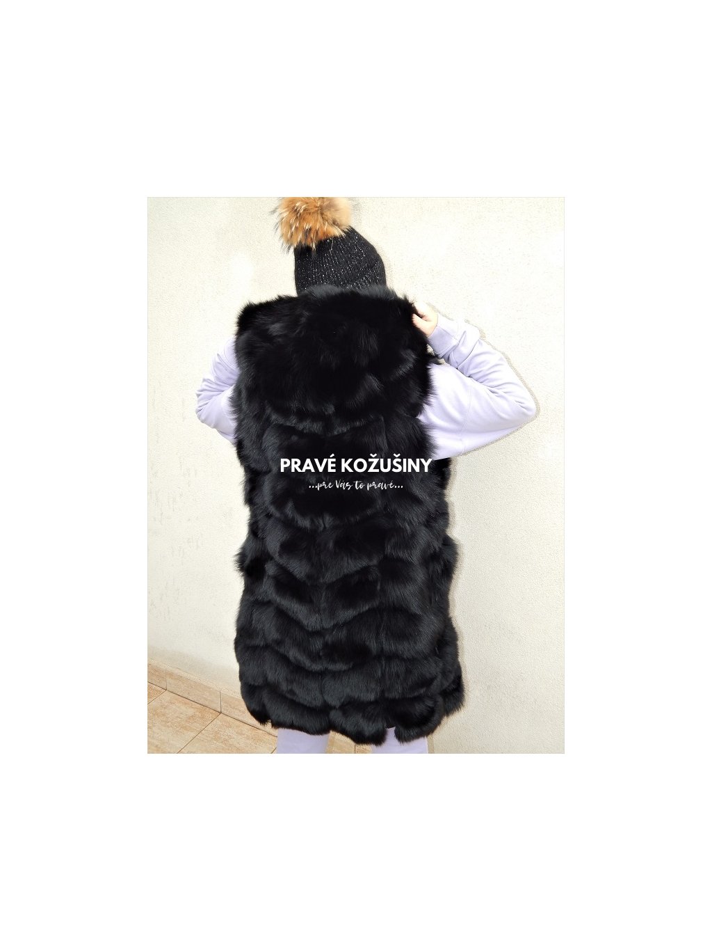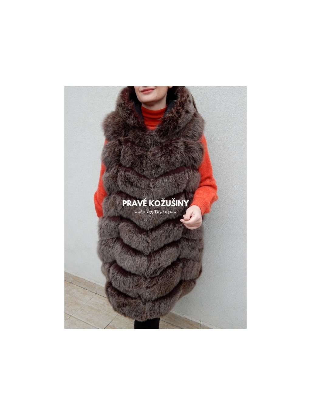 Až 90cm dlhá vesta z líšky s kapucňou Vás nenechá chladnou!