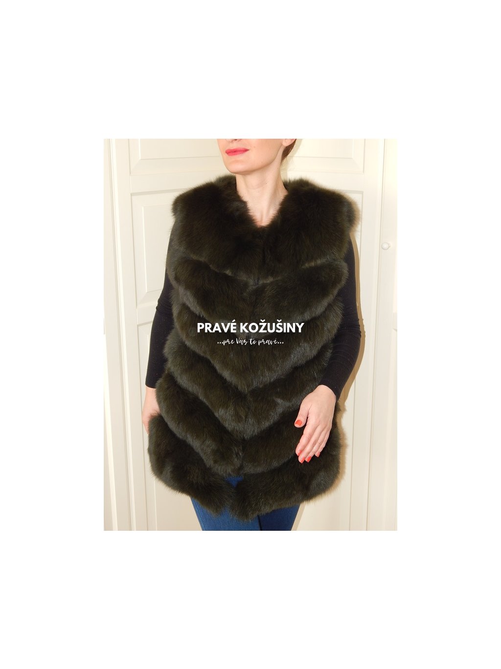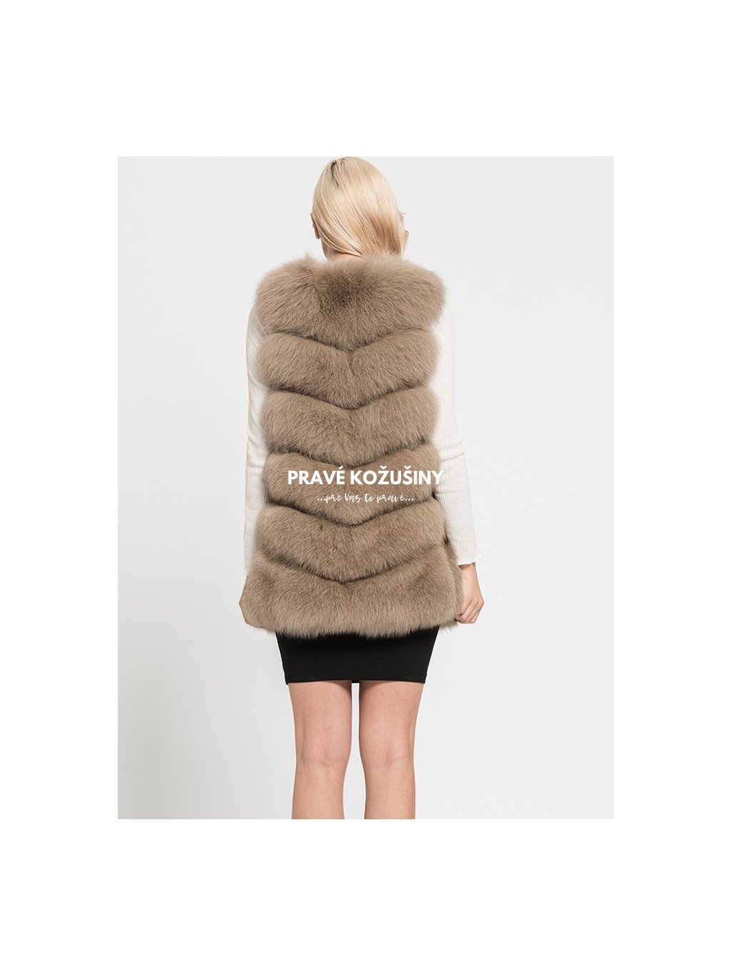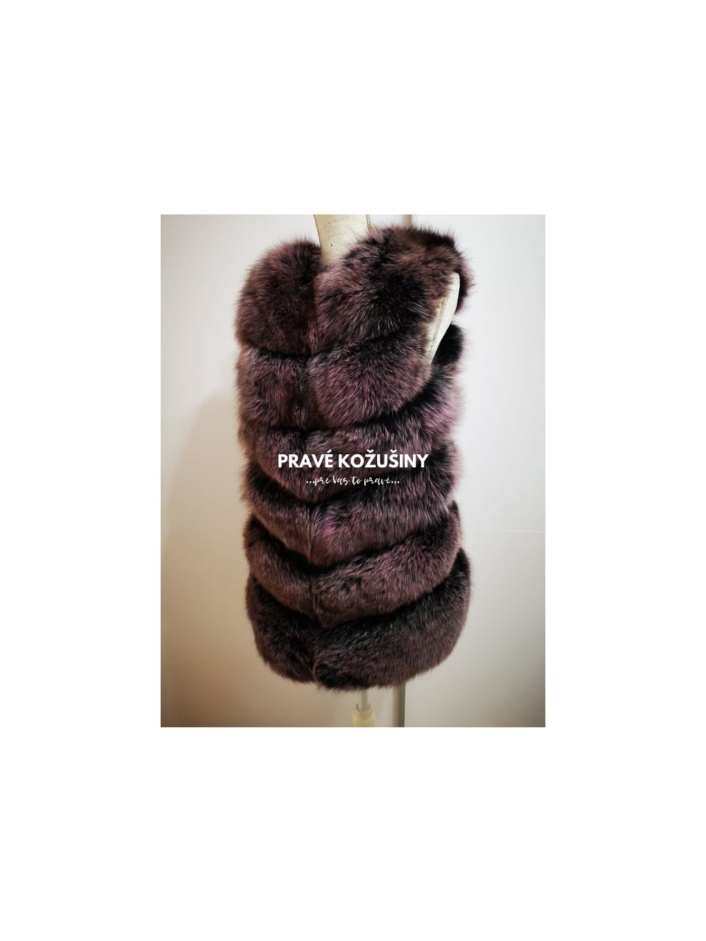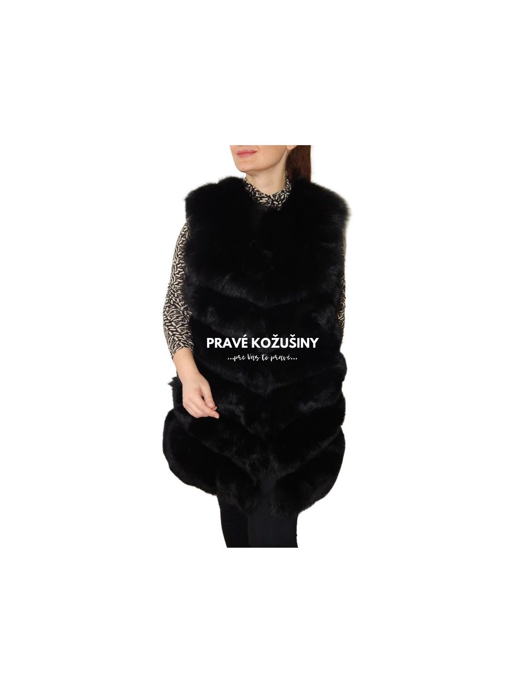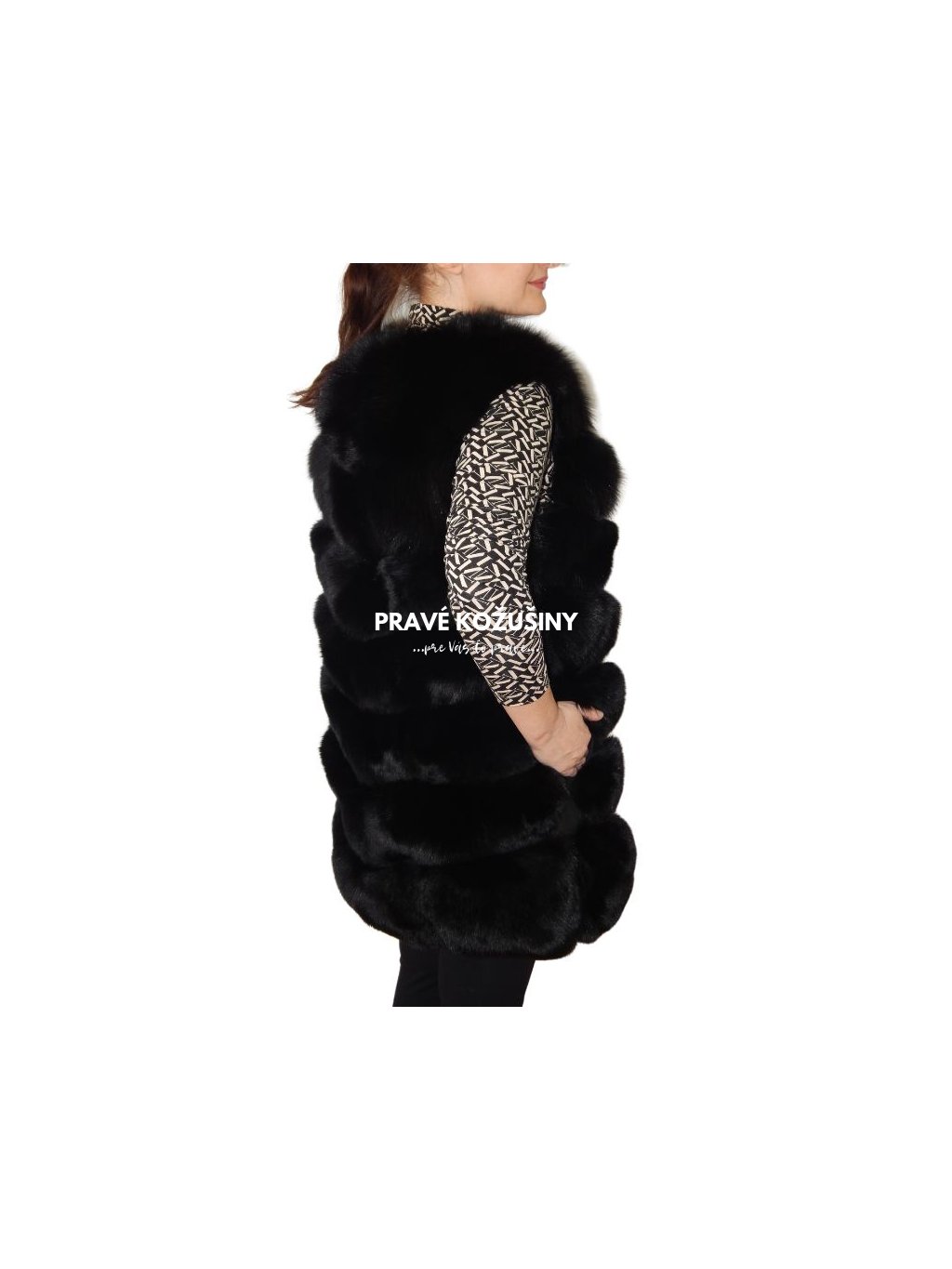 Úžasná vesta z líšky s pruhovaním v tvare "V".