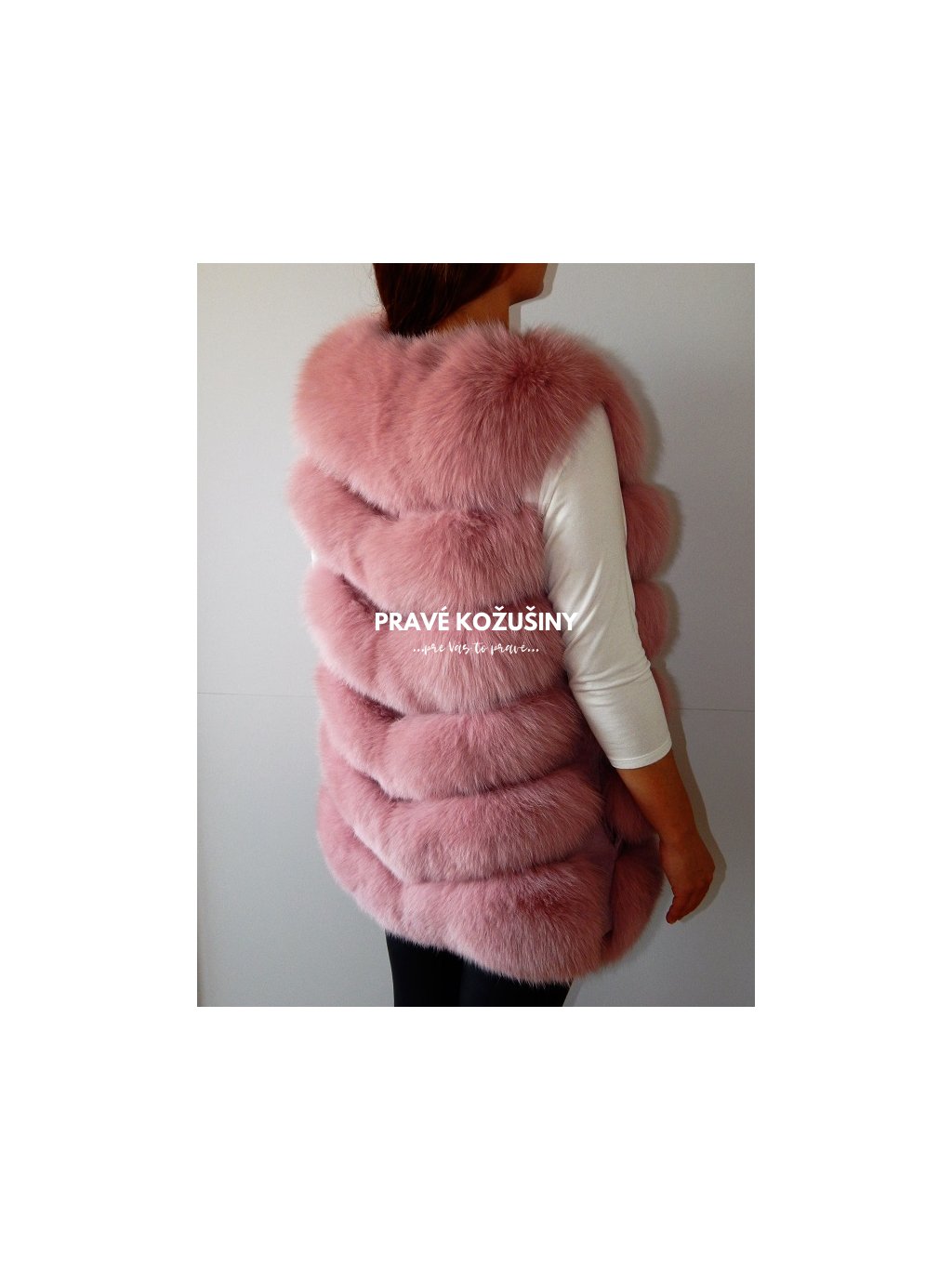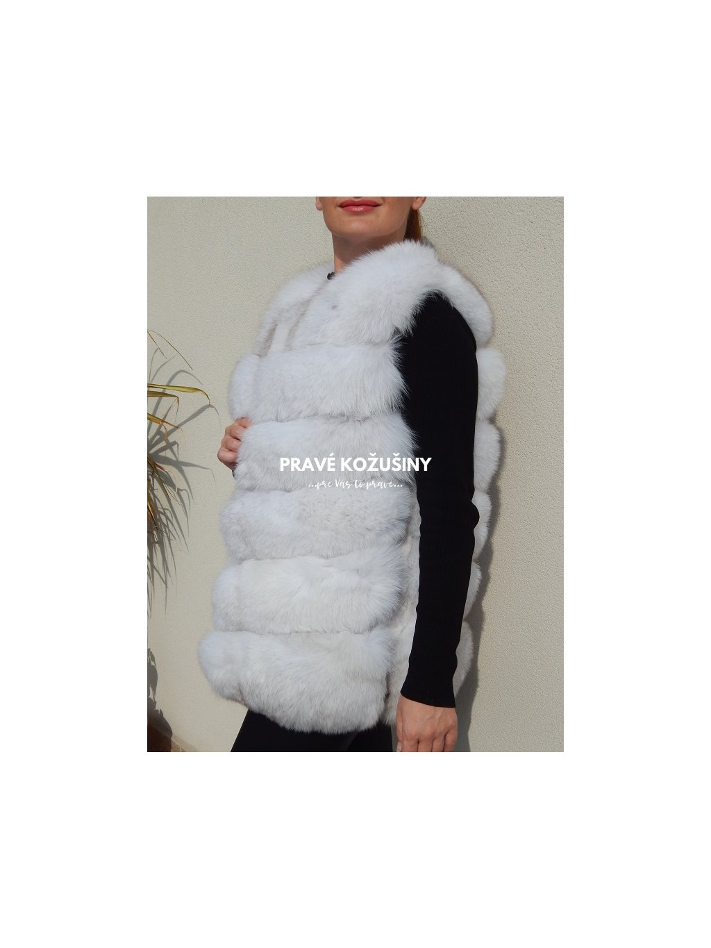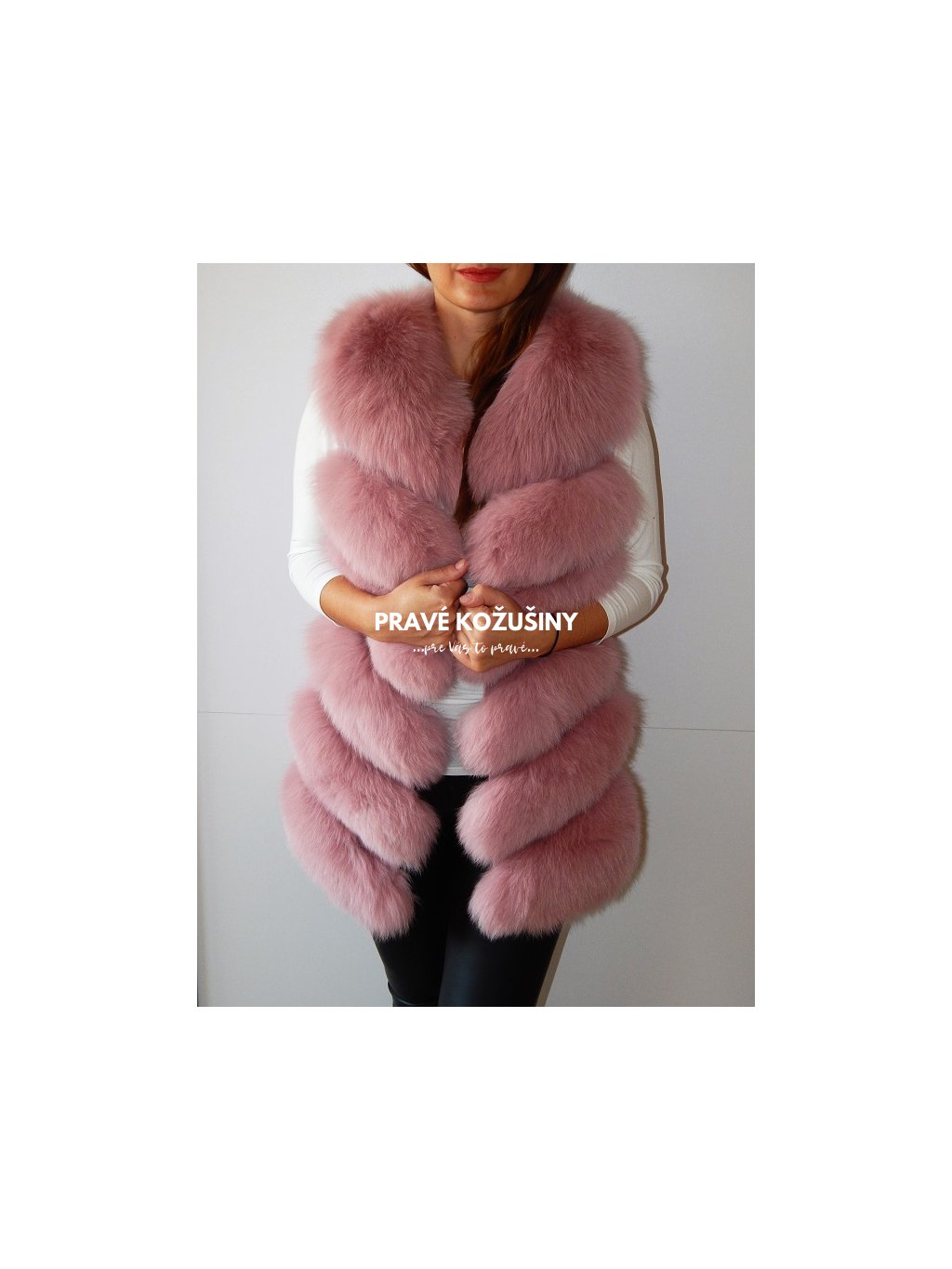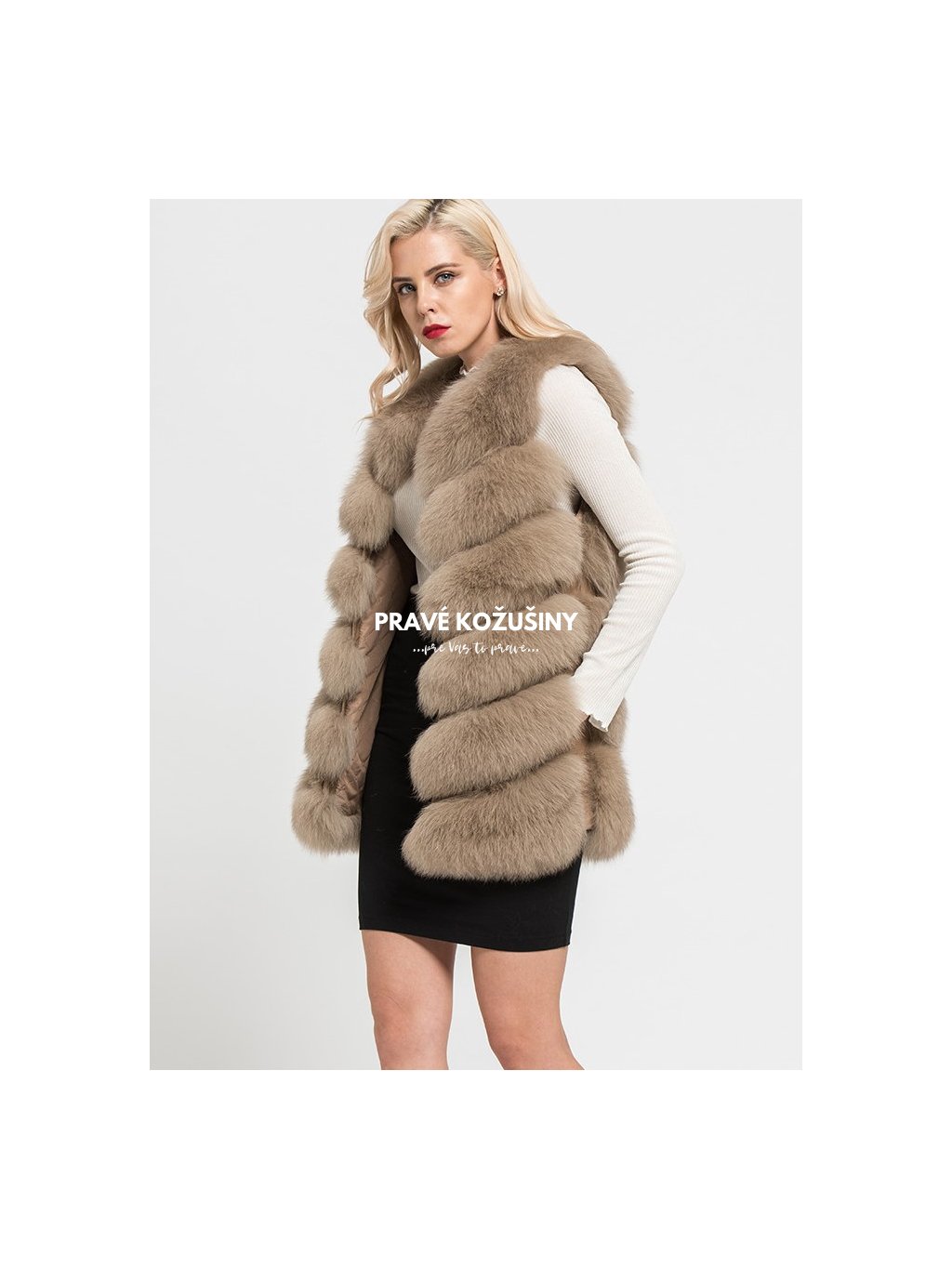 Úžasná vesta z líšky s pruhovaním v tvare "V".
