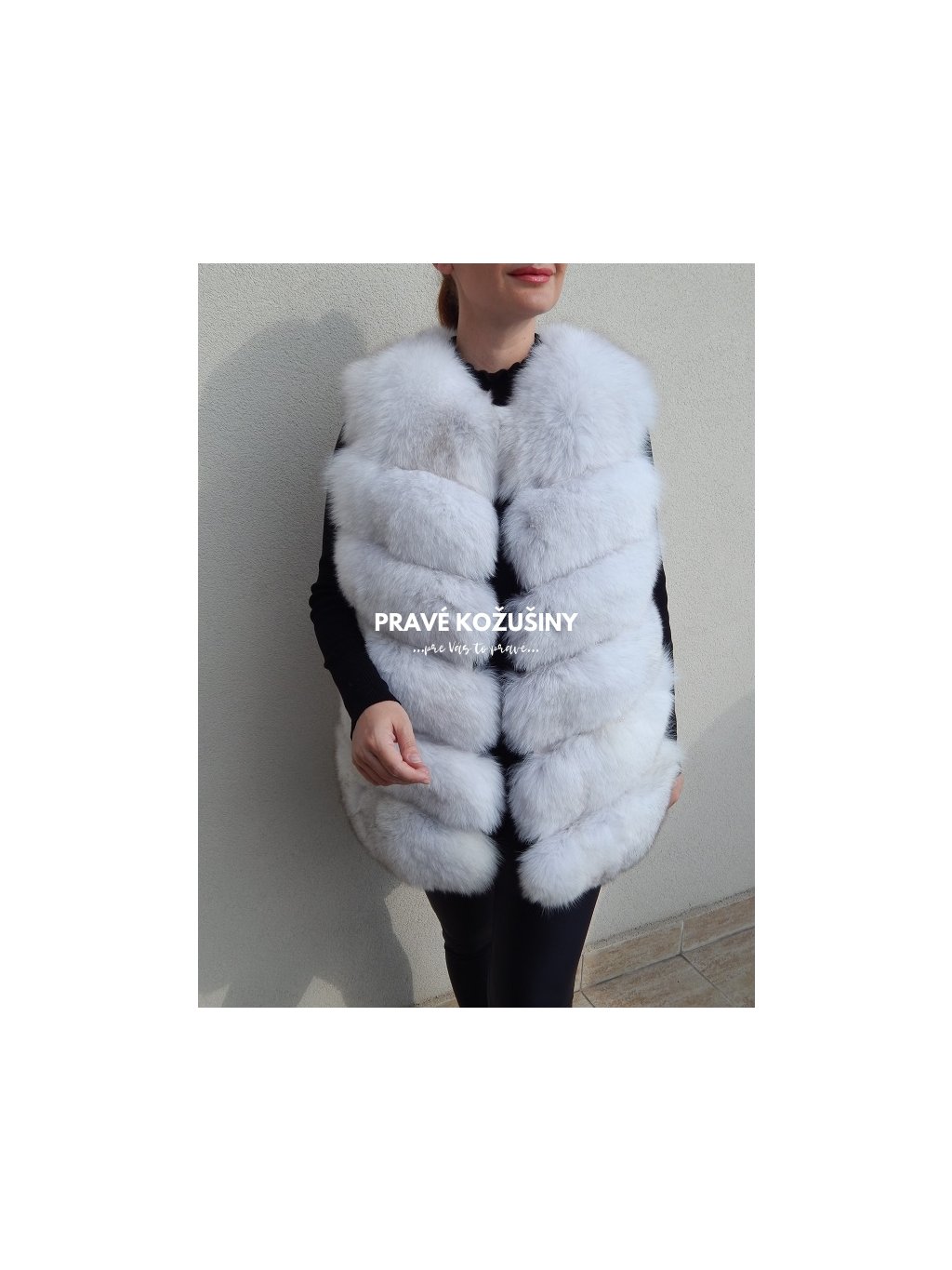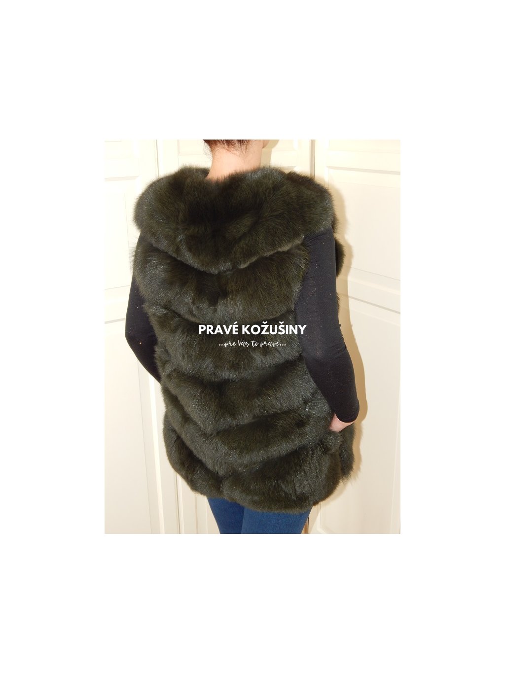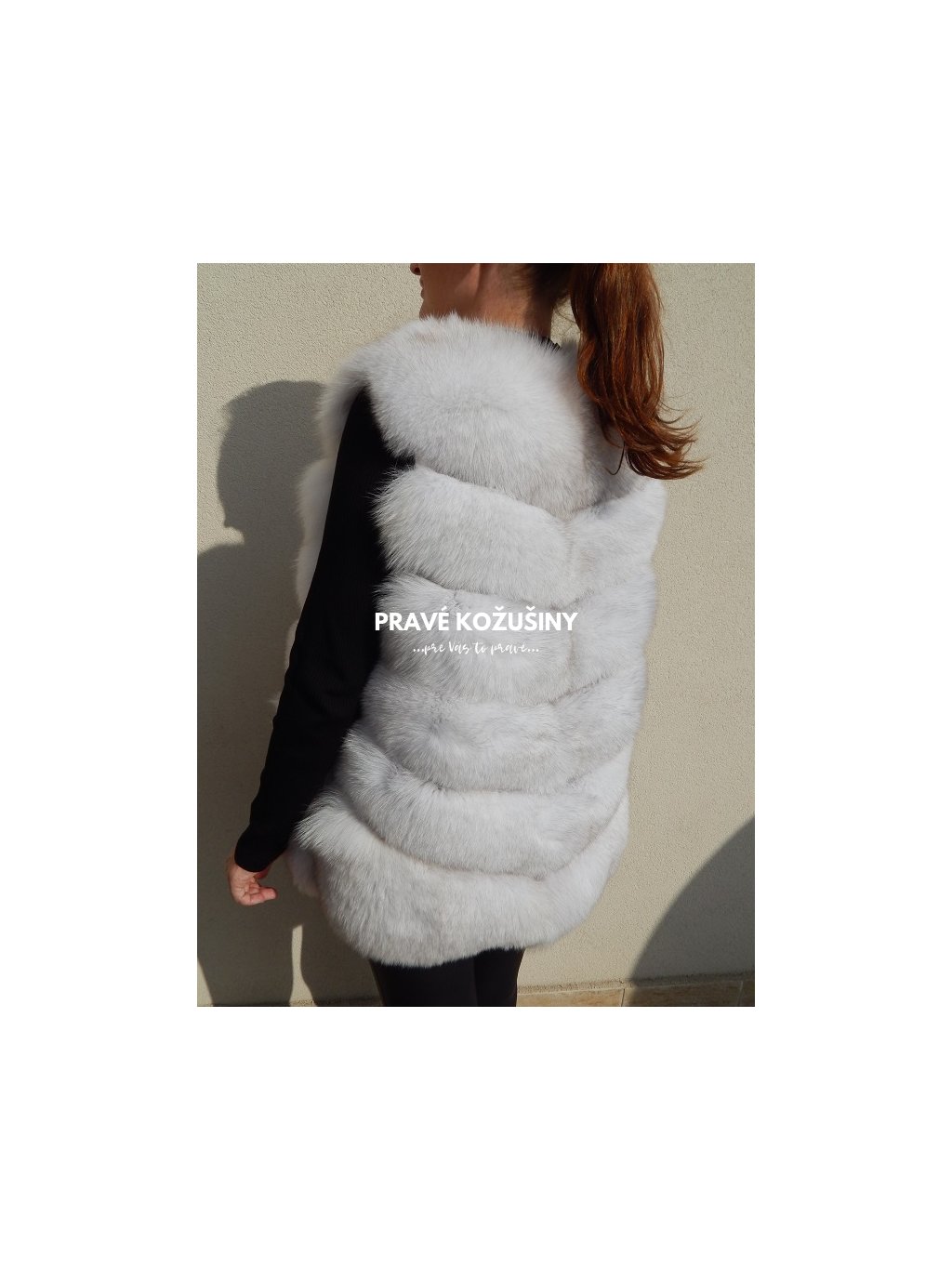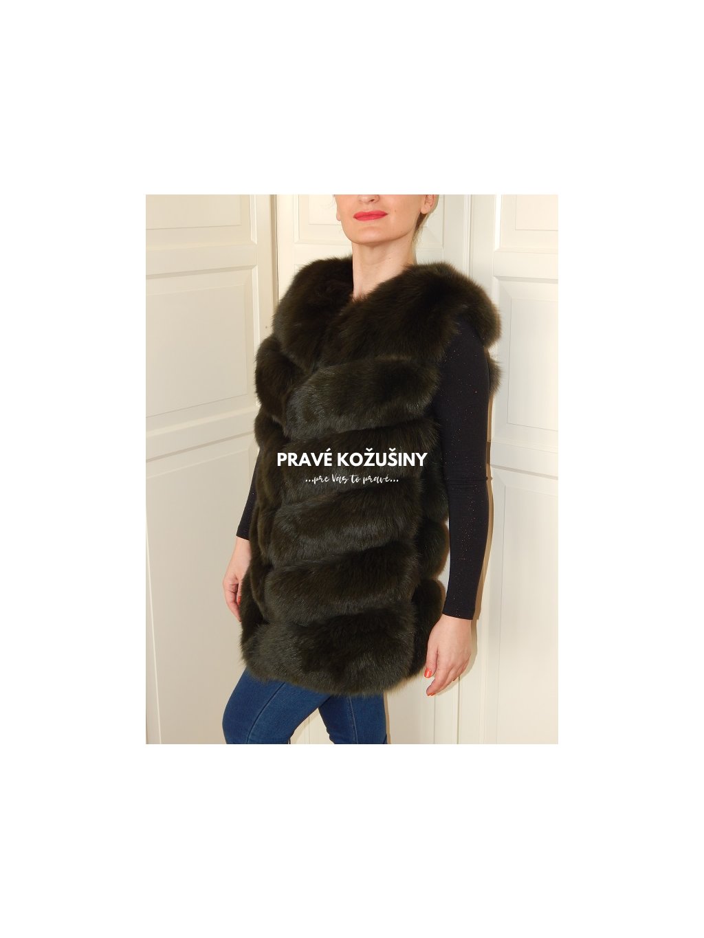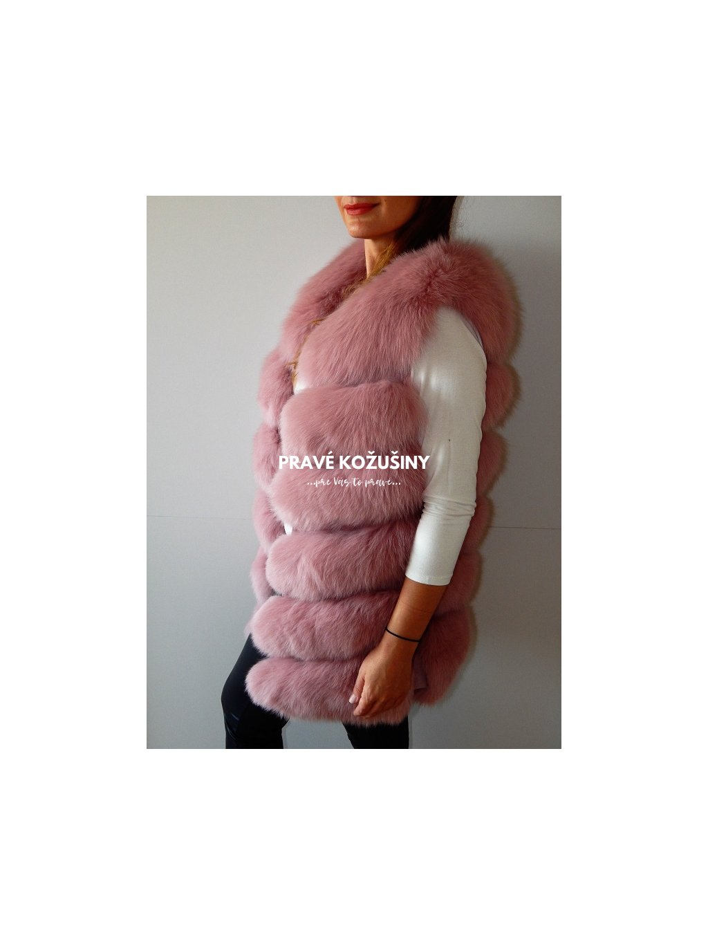 Úžasná vesta z líšky s pruhovaním v tvare "V".