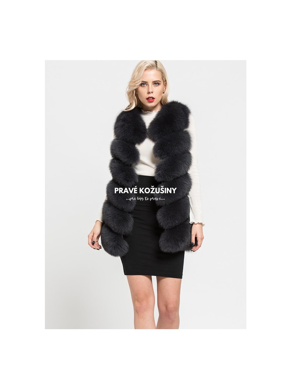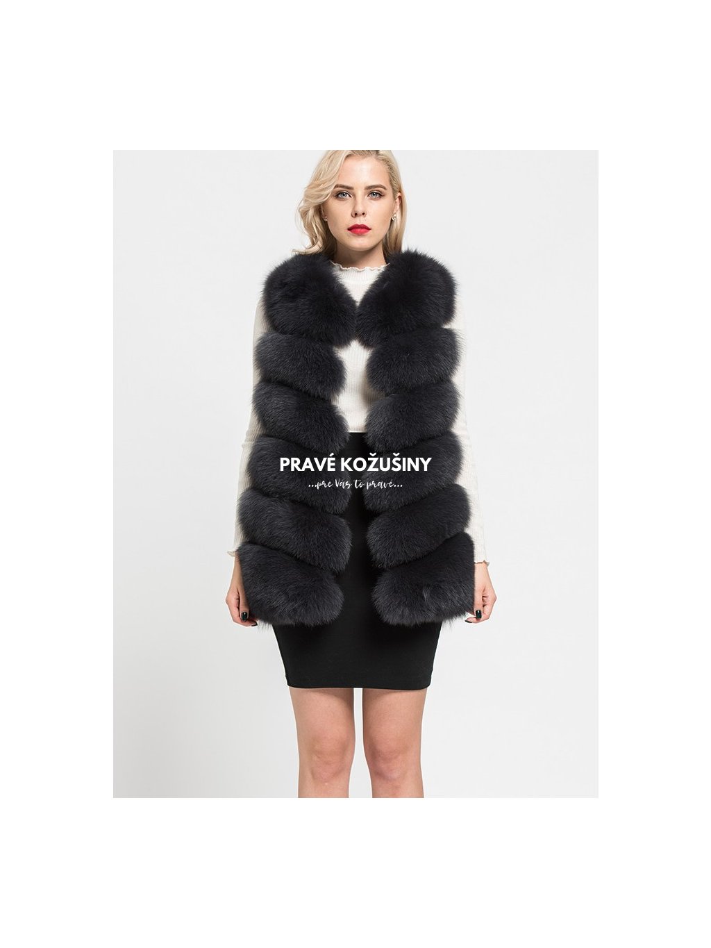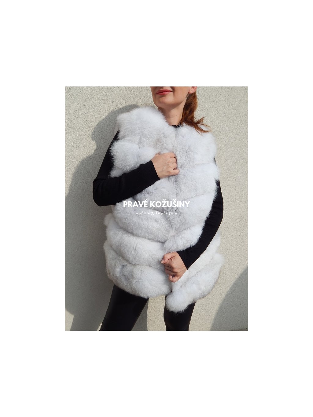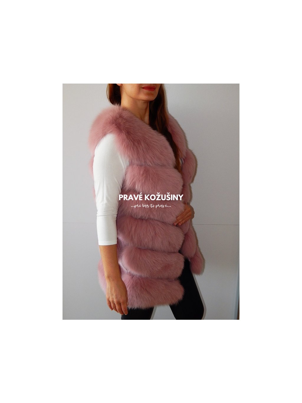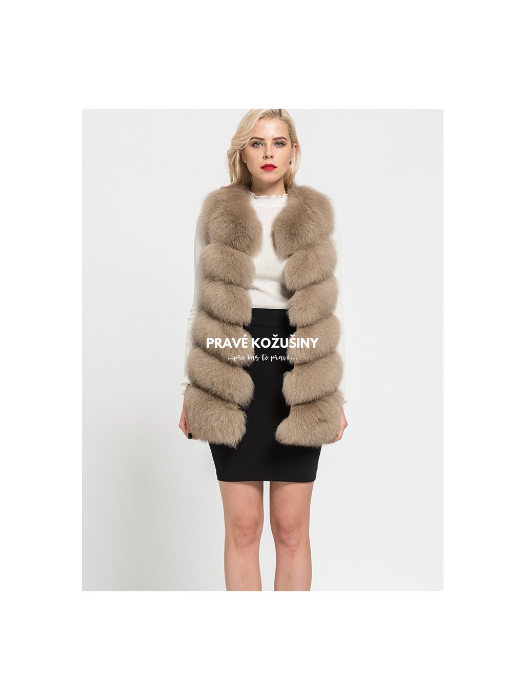 Úžasná vesta z líšky s pruhovaním v tvare "V".