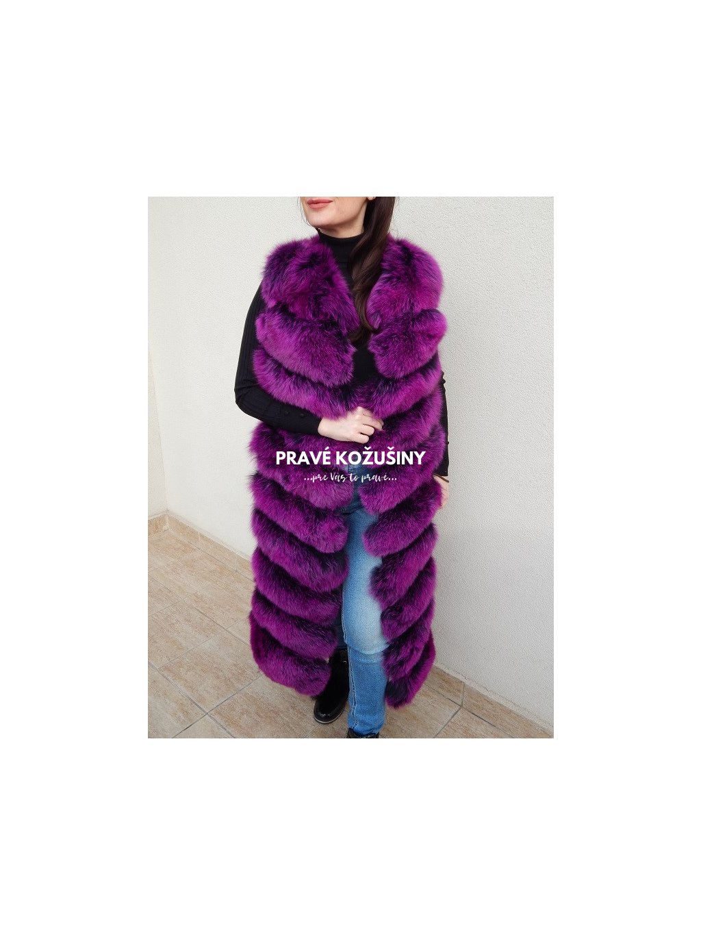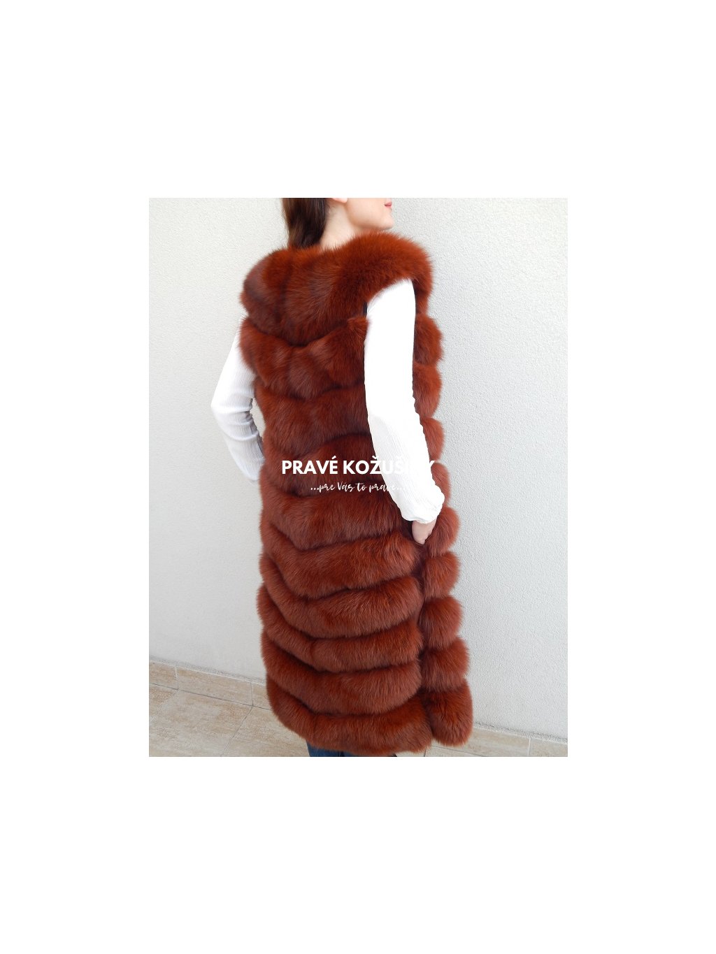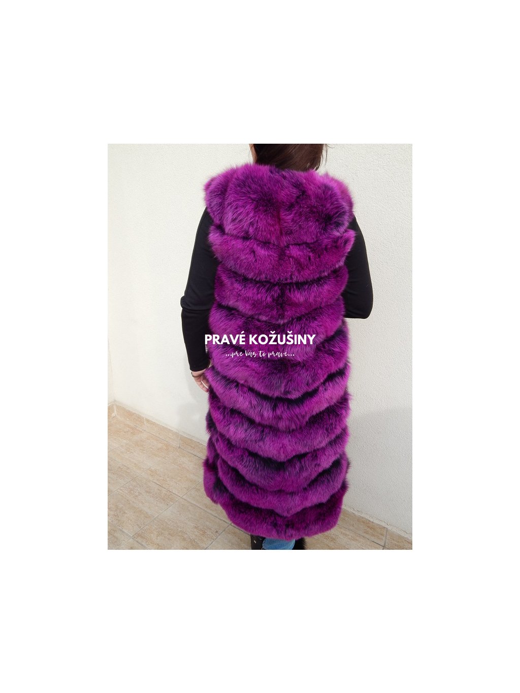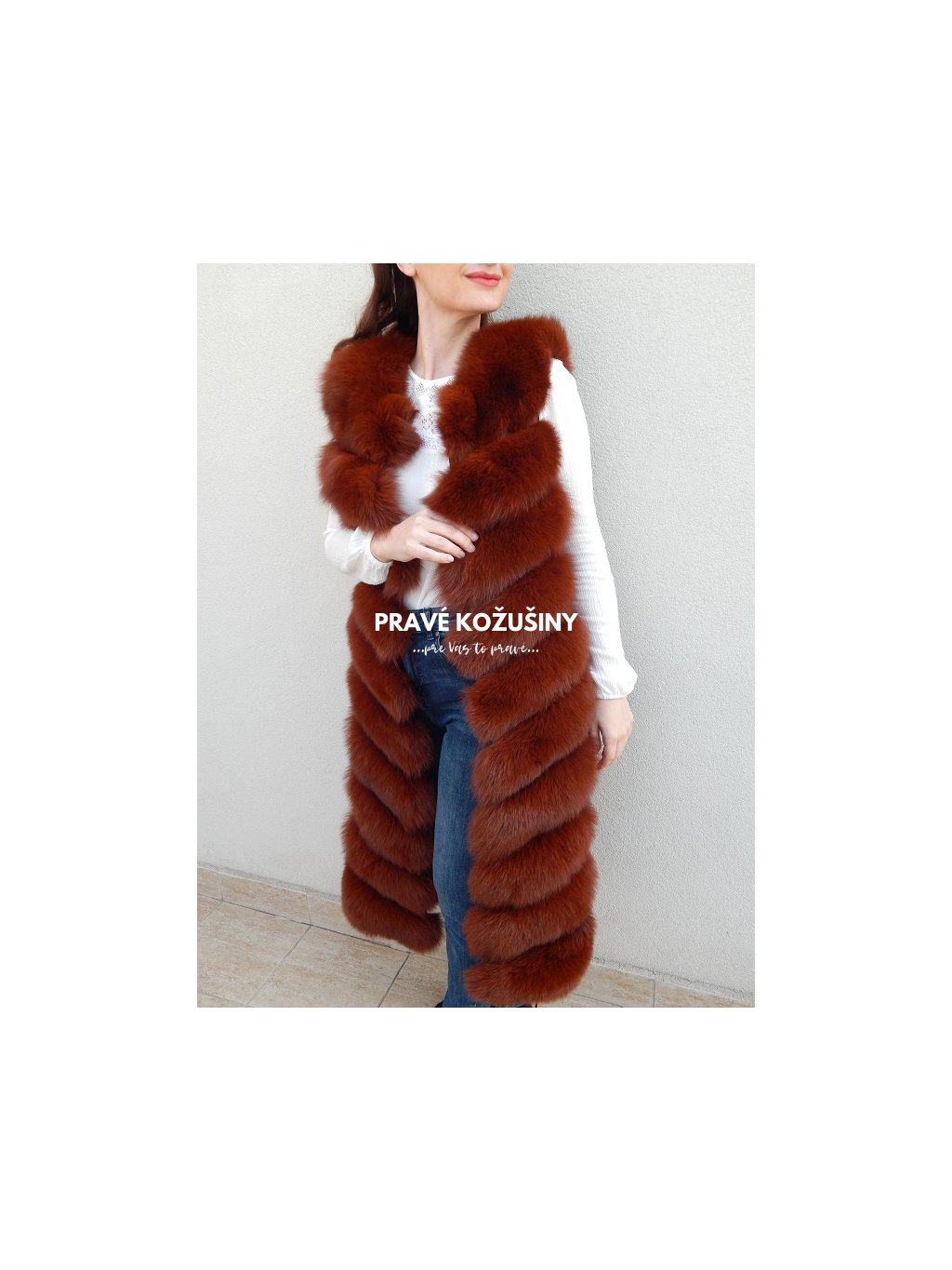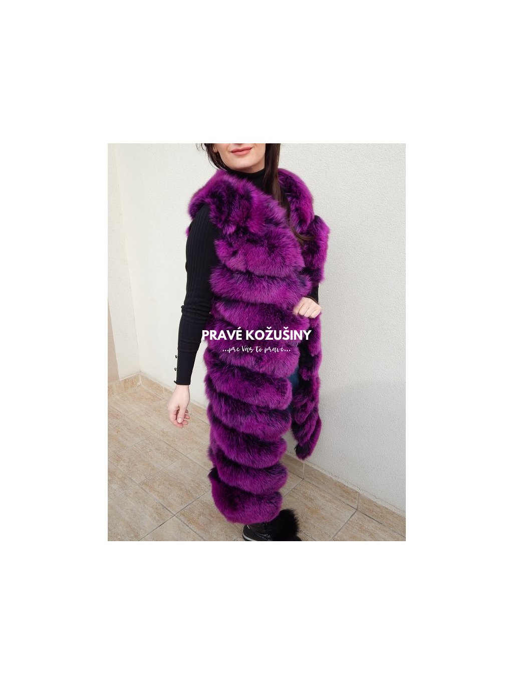 Úžasná vesta z pravej kožusiny líšky, so šikmým pruhovaním, má dve vrecká, je s podšívkou, mimoriadne príjemnou na dotyk a zapínanie na háčiky.