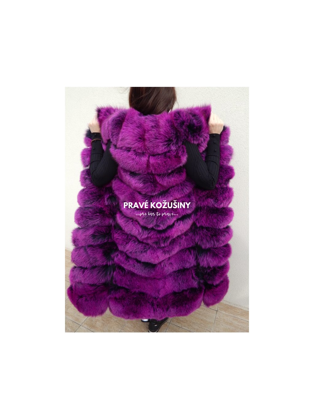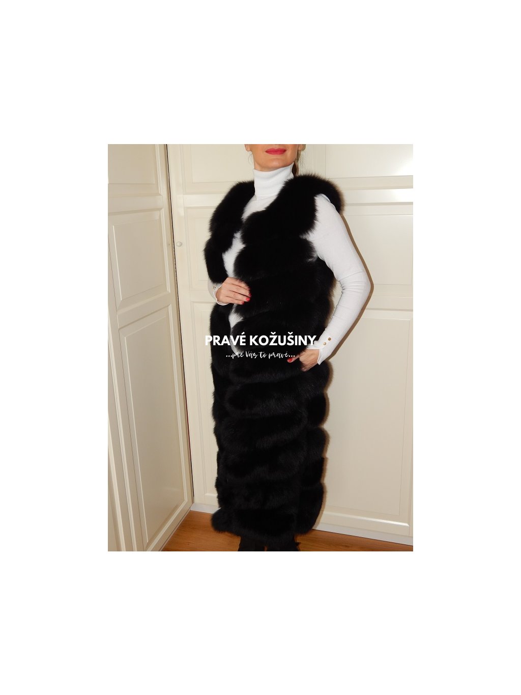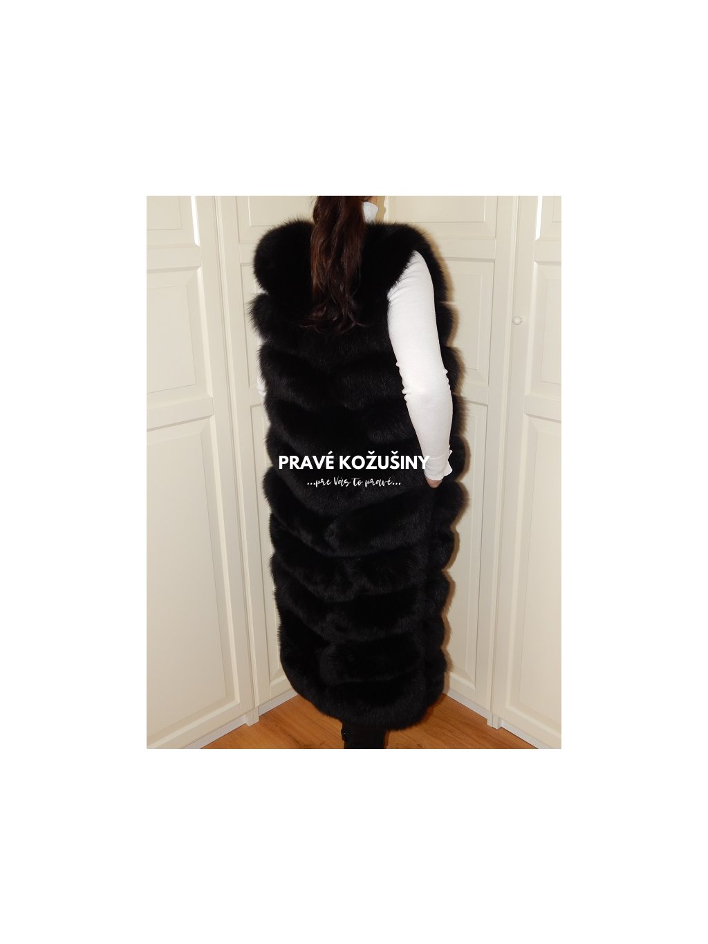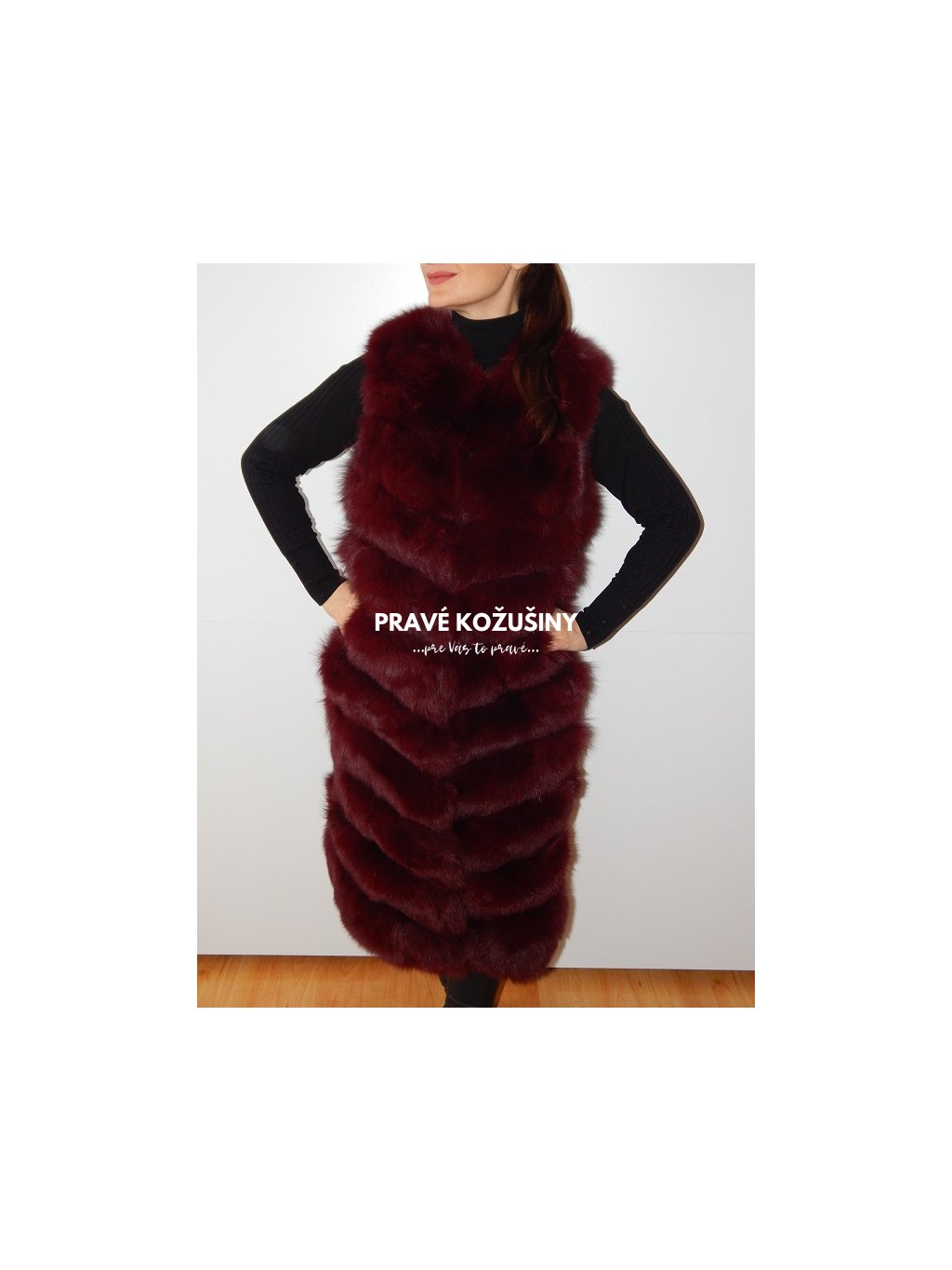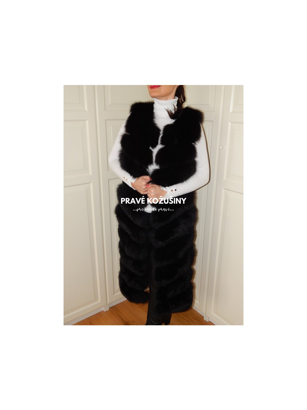 Úžasná vesta z pravej kožusiny líšky, so šikmým pruhovaním, má dve vrecká, je s podšívkou, mimoriadne príjemnou na dotyk a zapínanie na háčiky.