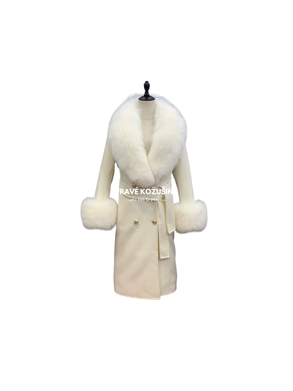 Golier a manžety sú z pravej líšky a sú odnímateľné.