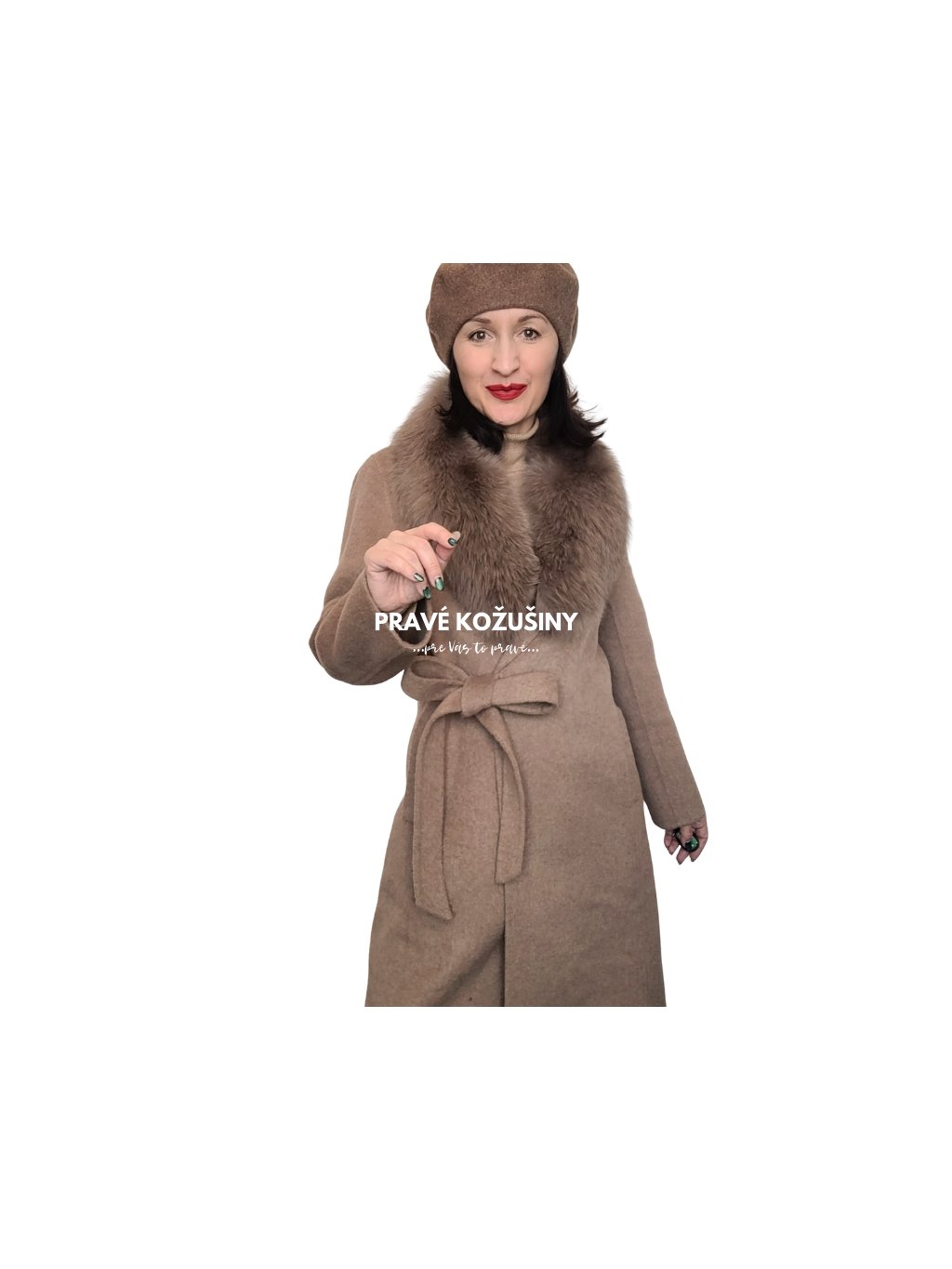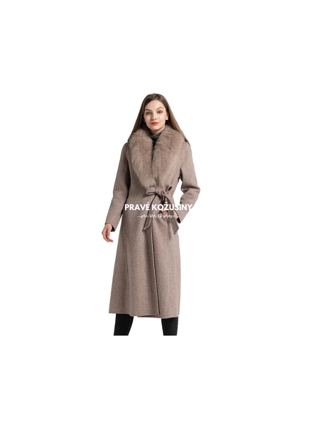 SKLADOM veľ. L - Dámsky vlnený kabát s pravou kožušinou líšky, K128