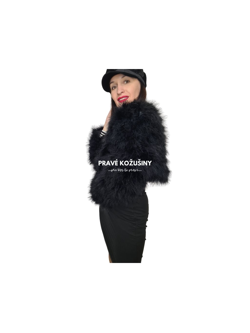 SKLADOM veľ. XS/S - Čierny kabátik z pštrosieho peria, K25